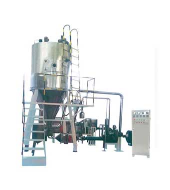 中藥浸膏專用噴霧干燥機是吸收國外技術開發的適用于熔點低、含糖高的中藥產品的干燥機械,并具有不粘壁、物料不焦化、不易吸潮等特點。該裝置根據干燥產品的特點和性質確定噴霧干燥的工藝條件,自動化程度高,操作方便,符合GMP要求,該裝置的成功開發,解決了多年來許多熔點低、含糖高的中藥產品不能用噴霧干燥的技術難點,也是對噴霧干燥在中藥制藥中的應用技術研究的新發展。