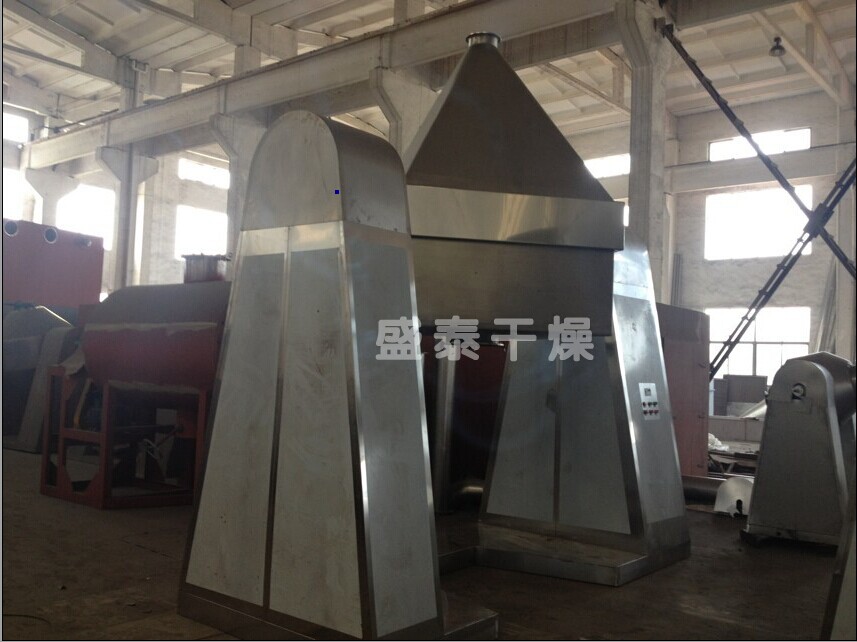 本機將粉末或粒狀物料通過真空輸送或人工加料到雙錐容器中,隨著容器的不斷旋轉.物料在容器中進行復雜的撞擊運動.達到均勻的混合。